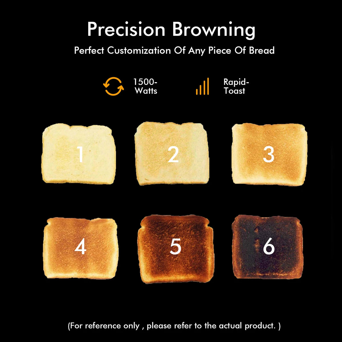 Effortless Toast Tracking: The innovative manual lift function of our toaster allows you to monitor the toasting progress without interrupting the cycle. It also comes with an extra-lift lever to ensure the safe and convenient retrieval of smaller items, giving you full mastery and ease throughout your toasting experience