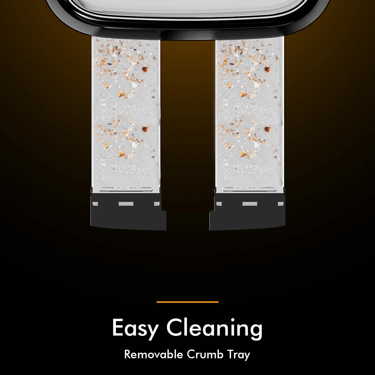 Dual Independent Control Panels, 4 - Slice Functionality: Our toaster is your breakfast lifesaver. Toast up to four slices of oversized artisan breads or chunky bagels to crispy perfection. More taste options, all prepared at once with the independent control panels. Experience the ultimate breakfast - less time, bigger choices