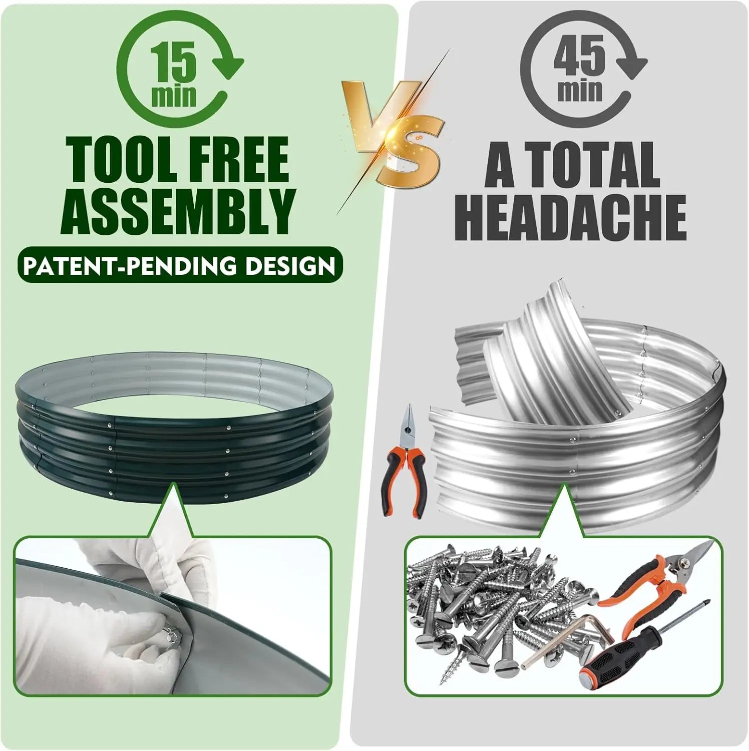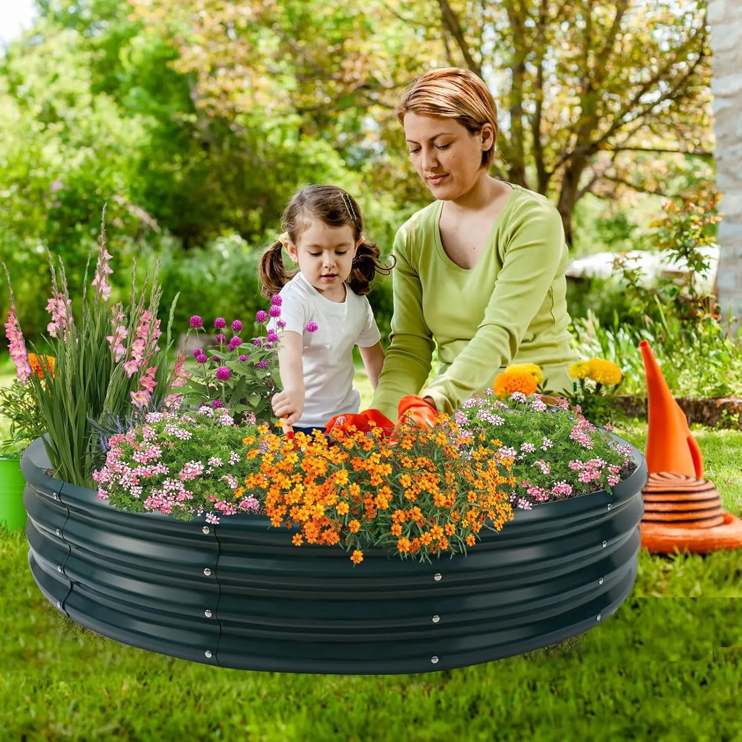 Enhance your gardening experience with our high-quality round metal raised garden bed. This planter box is designed to provide optimal conditions for plant growth while adding a stylish touch to your outdoor space. Key Features: 1. Durable Construction: Made from sturdy painted metal with a thickness of 0.7mm, this garden bed ensures long-lasting durability and resistance to weather elements, making it perfect for year-round outdoor use without rust or damage. 2. Improved Plant Health: The elevated design promotes better drainage and oxygen flow to plant roots, which helps prevent waterlogging and encourages healthier growth, leading to increased yields for vegetables, flowers, and herbs. 3. Versatile Planting Space: With a diameter of 4 feet (approximately 1.2 meters), this garden bed offers ample room for cultivating a variety of plants, making it ideal for backyard gardens, patios, or any outdoor area where you want to grow fresh produce or decorative flora. 4. Attractive Green Finish: The vibrant green paint not only adds a decorative element that blends seamlessly with natural surroundings but also enhances the overall aesthetic of your garden, creating an inviting environment. 5. Easy Assembly: Designed for convenience, this raised garden bed can be assembled quickly without the need for tools or complex instructions, allowing you to set up your gardening space in no time and start planting immediately. Save time and effort with the hassle-free setup process. Enjoy improved soil conditions that support robust plant development. Maximize your gardening potential in limited spaces with this compact yet spacious design. Add visual appeal to your outdoor area with the sleek green finish that complements various garden styles. This garden bed is perfect for home gardeners looking to grow vegetables like tomatoes and lettuce, flowers such as marigolds and petunias, or herbs including basil and mint. It's suitable for beginners and experienced gardeners alike who value durability and functionality in their gardening tools.