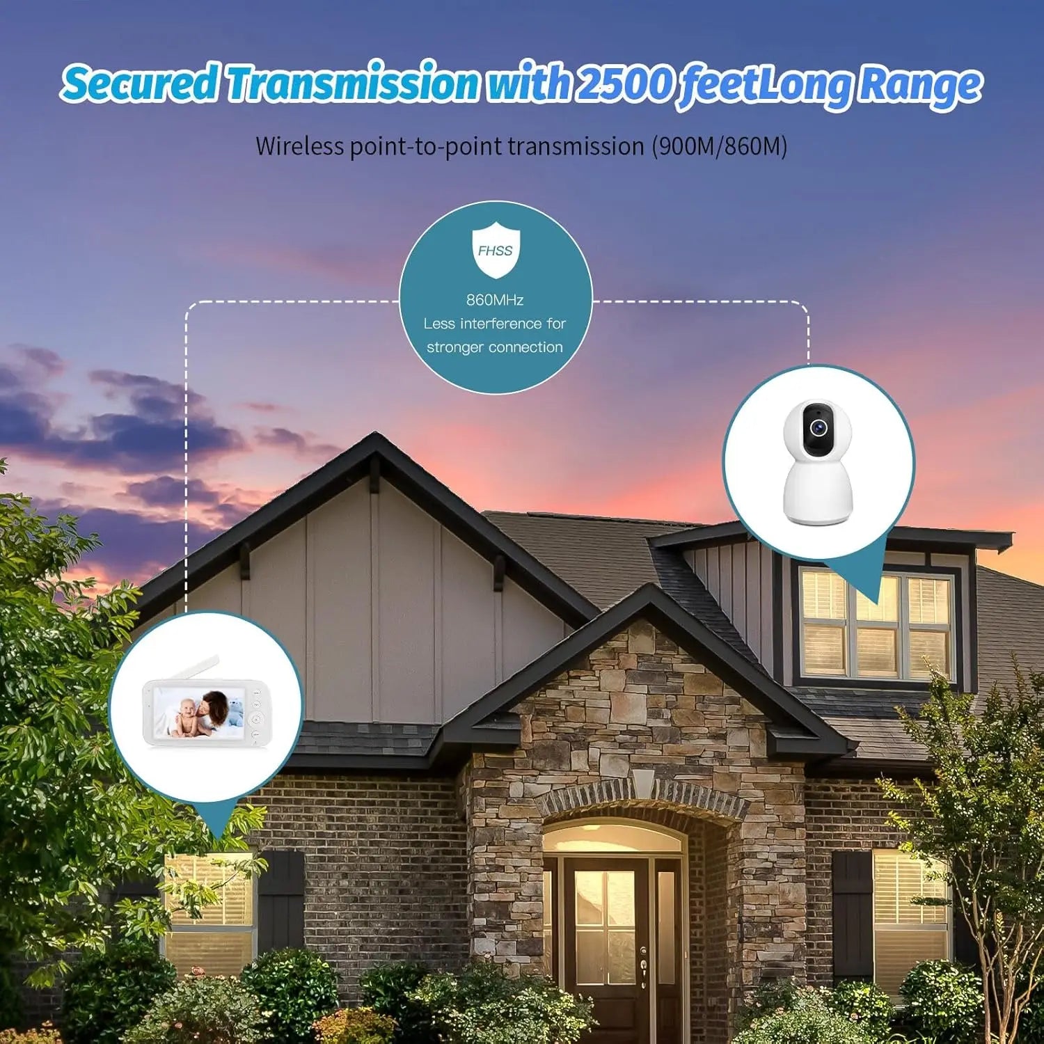 This is a non-WiFi video baby monitor. The handheld device uses advanced wireless point-to-point transmission and digital encryption technology. The connection frequency between camera and monitor is between 900MHz/600MHz, the data transmission between camera and monitor is very fast, you don't need to worry about data leakage and hacker's attack at all, your baby and family members are in a very safe environment, even it can prevent some dangerous things from happening.