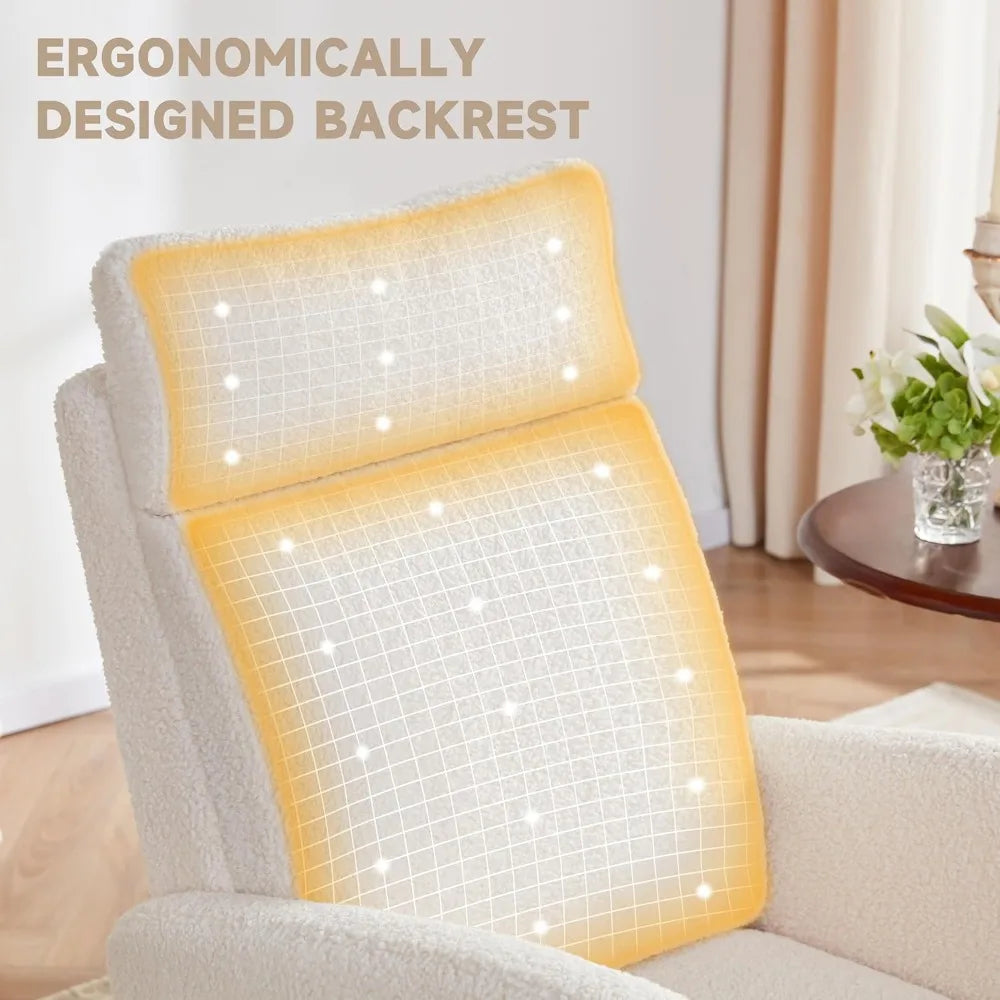 The ergonomic backrest provide excellent support for your body, ensuring maximum comfort and safety. The glider rocker for nursery with a 26-inch high backrest provides strong support for your head, neck and entire back. Even during long periods of sitting, you won't feel fatigued.